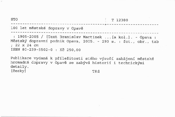 Vydání: Městský dopravní podnik Opava 2005 | Jazyk: čeština | Signatura: T 12380
