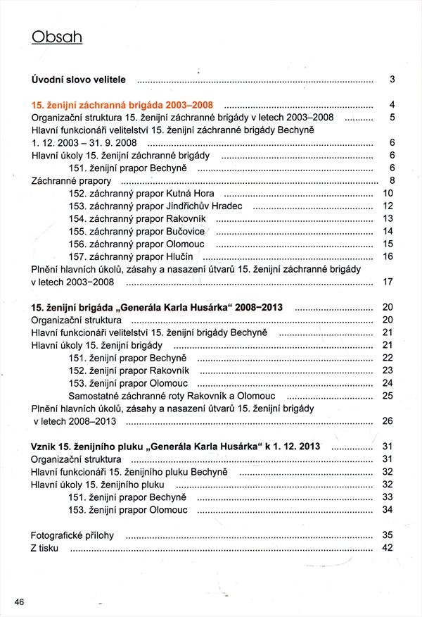 Organizační struktura a činnost 15. ženijní brigády Karla Husárka, která byla v průběhu roku 2013 přeměněna na 15. ženijní pluk.