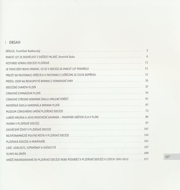Publikace seznamuje s dvacetiletou (1993-2013), i přes to bohatou historií plzeňské diecéze.