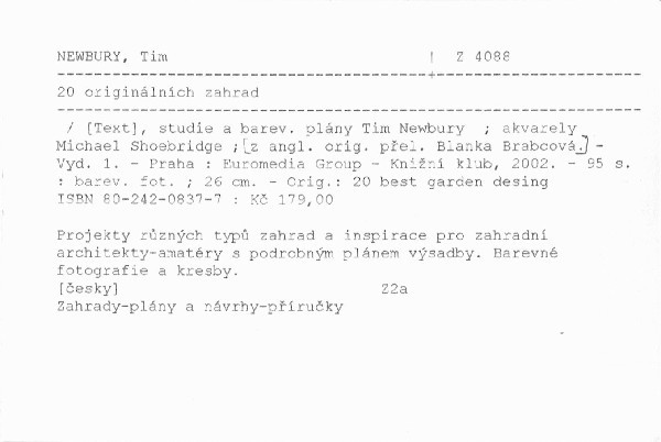 Při plánování zahrady je prospěšné mít od začátku jasnou představu o typu a podobě zahrady i když navržený projekt uskutečňujeme postupně. Publikace nabízí návrhy různých typů zahrad, zahradní celky s podrobným plánem výsadby, které můžeme přispůsobit svému vkusu, finančním možnostem, rozloze pozemku atd. Publikace je názorně doplněná barevnými fotografiemi, kresbami, náčrtky a plánky výsadby. Z2d vasickoa
