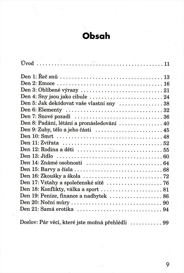 Přesně 21 dní potřebujeme k osvojení nějakého zvyku a přesně tak dlouho potrvá, než se naučíte rozumět svým snům. Tento průvodce se snaží svým čtenářům poskytnout individuální vhled do jejich podvědomí a pomoci jim porozumět každodenním událostem a problémům. Jak budete postupně chápat své sny, porozumíte také sami sobě. Nakladatelská anotace. Kráceno.