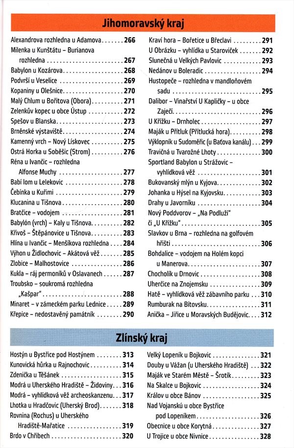 U každé rozhledny jsou uvedeny základní údaje, přístup pro pěší turisty, cyklisty i automobilisty, možnosti parkování. Každé stavbě je věnována jedna strana s unifikovaným rozsahem informací. Pro jednotné údaje jsou zvoleny názorné ikony. Abecední rejstřík staveb v závěru publikace.