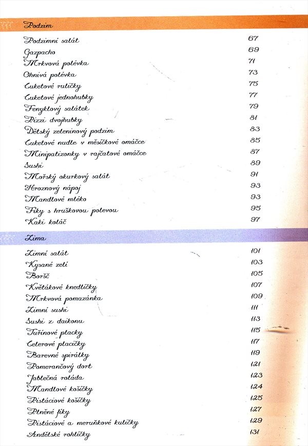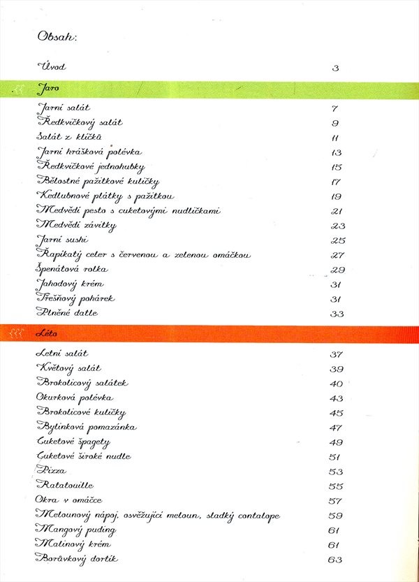 Kniha je rozdělena podle ročních období. Recepty z dostupných surovin jsou vitariánské s použitím pouze čerstvé, tepelně neupravené zeleniny, ovoce, semen, ořechů, bylin a mořské zeleniny. Sůl je použita jen velmi střídmě. Pokrmy jsou určené pro zdravé i nemocné, kteří touží po znovuzískání životní síly. Recepty jsou příkladem ročního jídelníčku autorky, který započala před 33 lety.