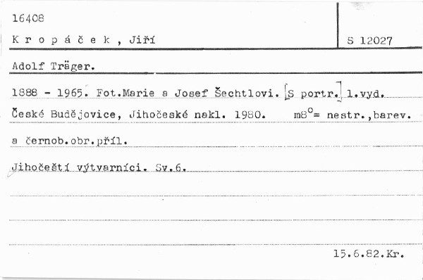 Malá monografie českobudějovického malíře Adolfa Trägra, zakladatele novodobého jihočeského umění.