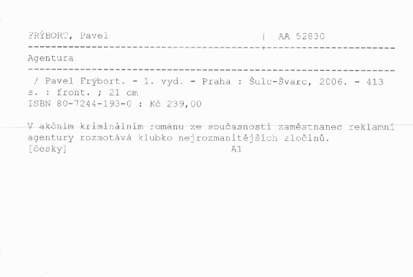 V akčním kriminálním románu ze současnosti zaměstnanec reklamní agentury rozmotává klubko nejrozmanitějších zločinů.