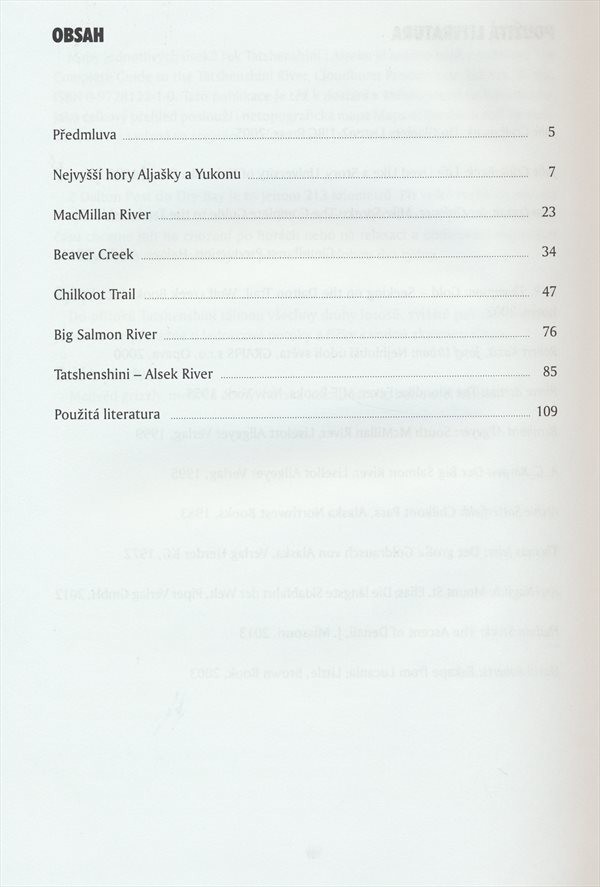 Popisuje v ní cestu v treking kánoi a raftu po čtyřech řekách, jakož i populární pěší přechod přes legendární Chilkoot Pass. Zvláště zajímavá byla pro něj cesta po divokých řekách Tatshenshini–Alsek, které tečou napříč vysokým pobřežním pohořím Saint Elias Mountains a ústí do Aljašského zálivu. Nakladatelská anotace.
