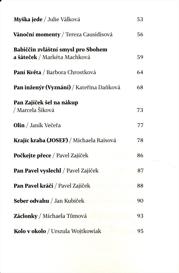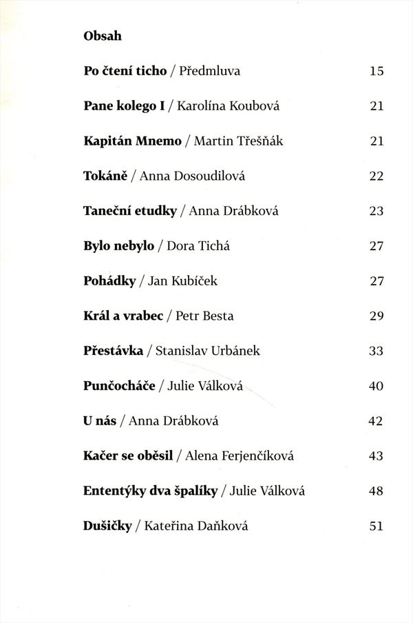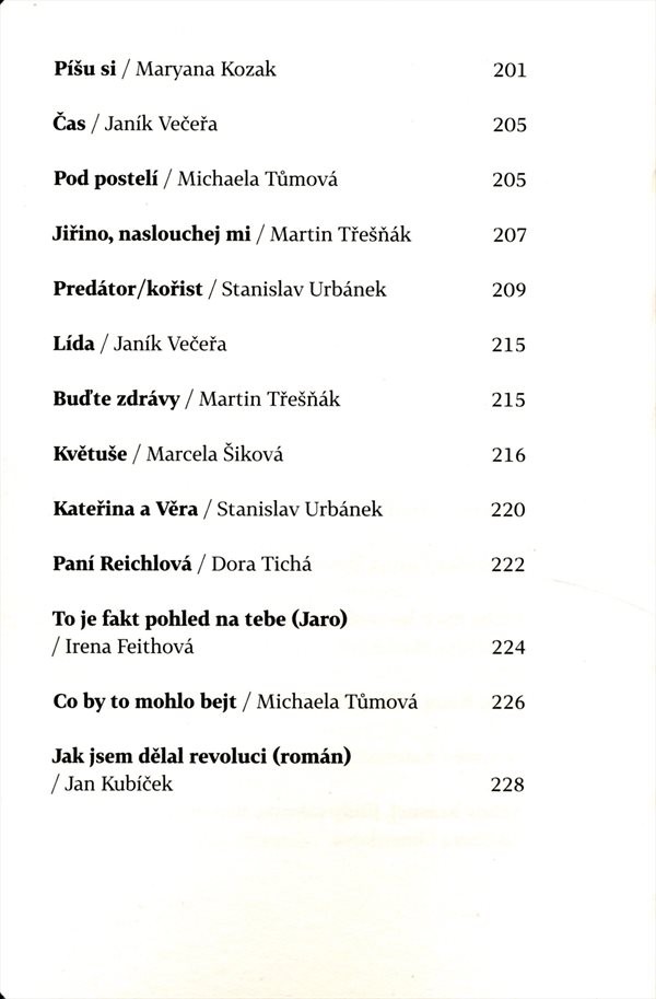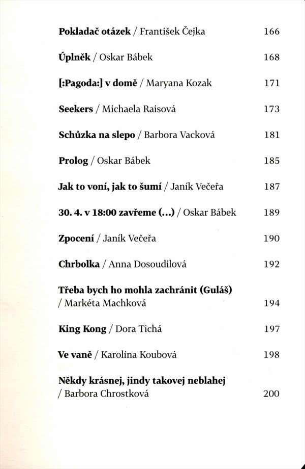 Kniha obsahuje práce studentů Katedry autorské tvorby a pedagogiky DAMU. Jedná se o krátké texty určené pro prezentaci ve formě autorských čtení.