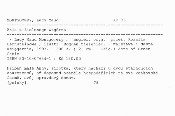 Autor | Lucy Maud Montgomery ; ilustr. Bogdan Zieleniec ; [angiel. oryg.] przeł. Rozalia Bernsteinowa |