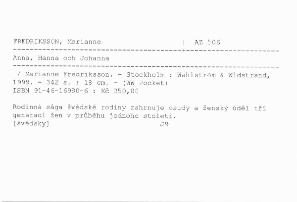 Vydání: Wahlström & Widstrand 1999 | Jazyk: švédština | Signatura: AZ 506