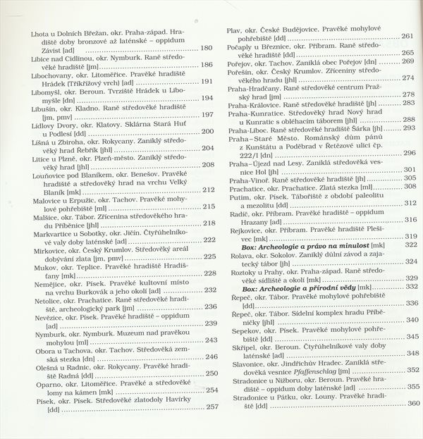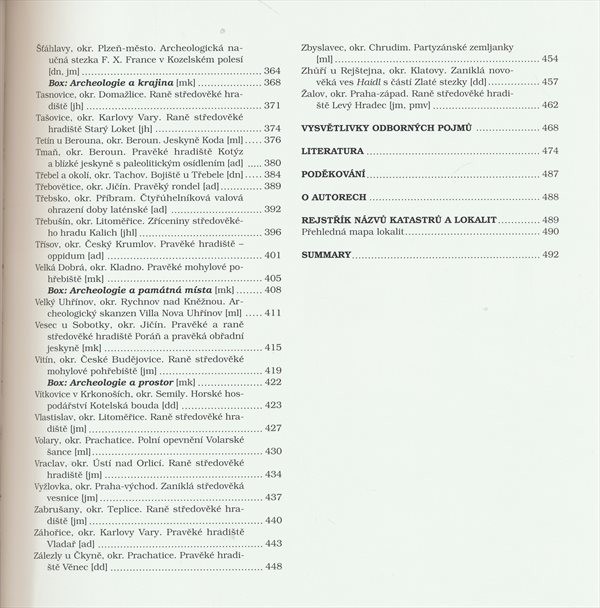 Průvodce obsahuje popis 105 významných archeologických lokalit Čech z období paleolitu až do 20. století.