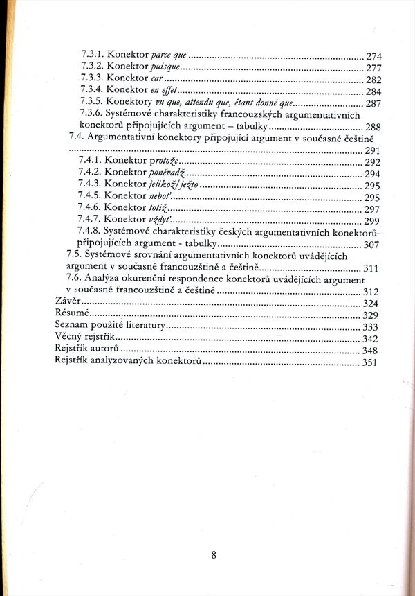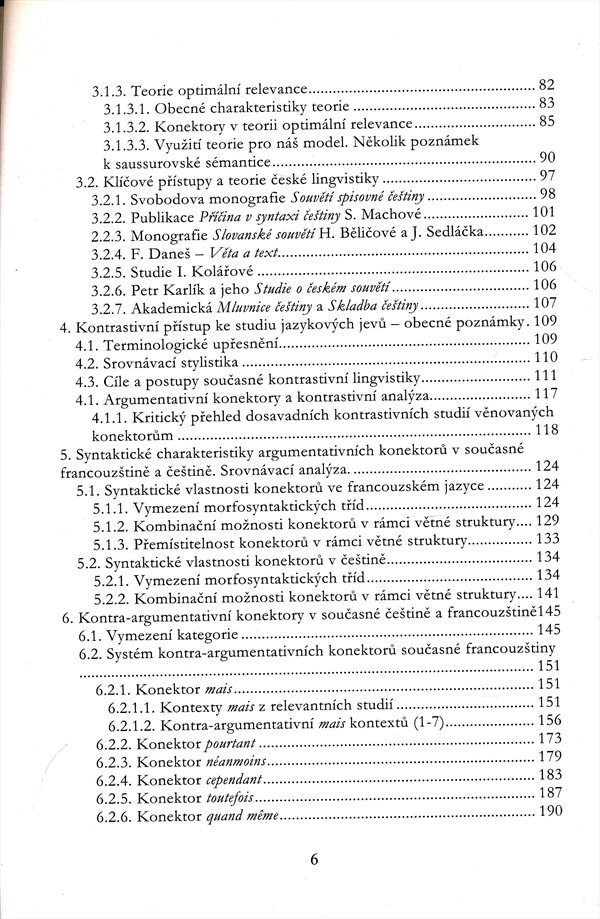 Analýza argumentativních konektorů v současné francouzštině a češtině. Je navržen model fungování budovaný s ohledem na jeho využití pro systémové komparace a pro analýzy okurenčních respondencí.