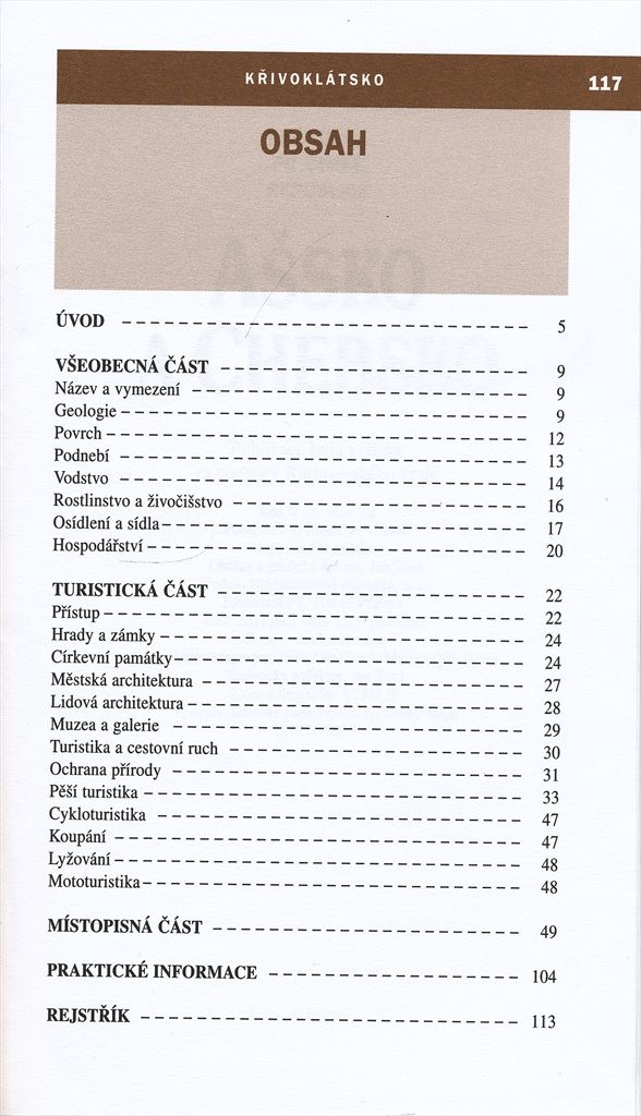 Úvodní všeobecná část příručky je poměrně rozsáhlá. Vysvětluje historický vývoj území a podává pro turisty důležité zeměpisné informace. Jádro průvodce tvoří místopisná část, která v abecedně řazených heslech podle názvů míst popisuje jednotlivé lokality. Doplněno několika zajímavými barevnými fotografiemi a na závěr - v turistické části - i informacemi o dopravě, pohraničních přechodech, turistických stezkách, možnostech ubytování, stravování i zajímavých kulturních a sportovních aktivitách.