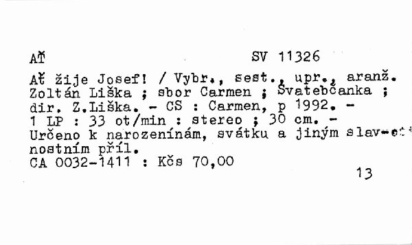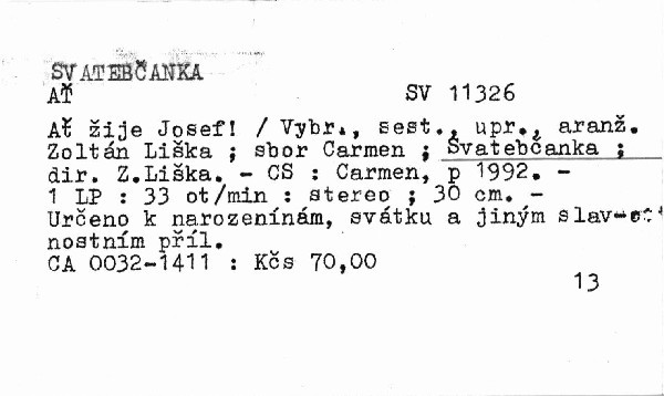 | Katalogové číslo zvuk. | CA 0032-1 |