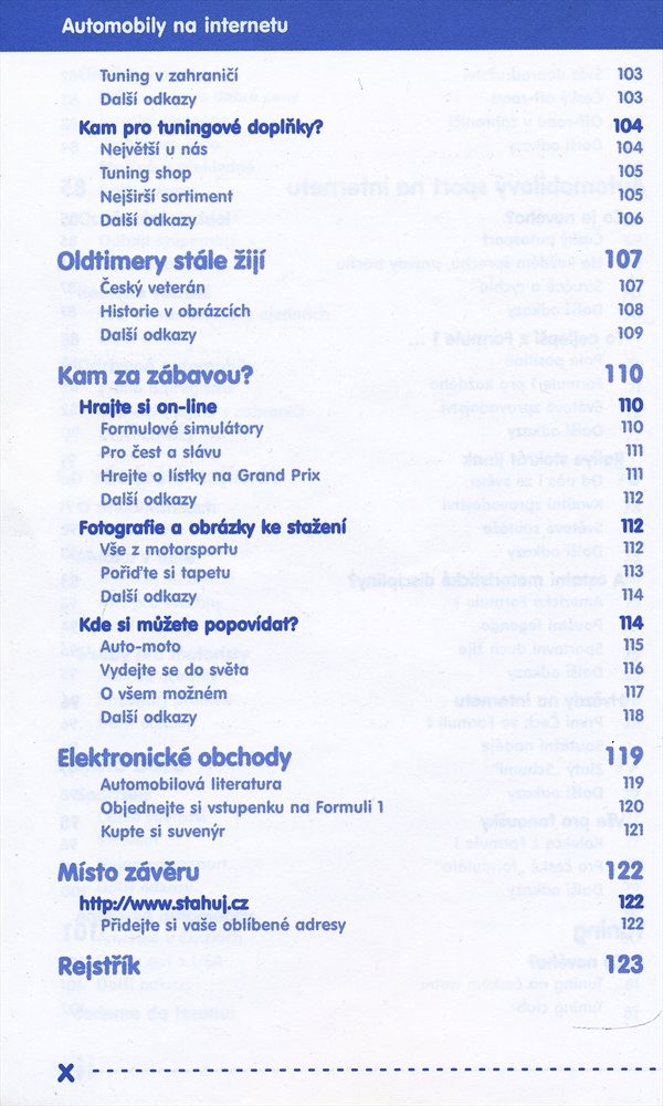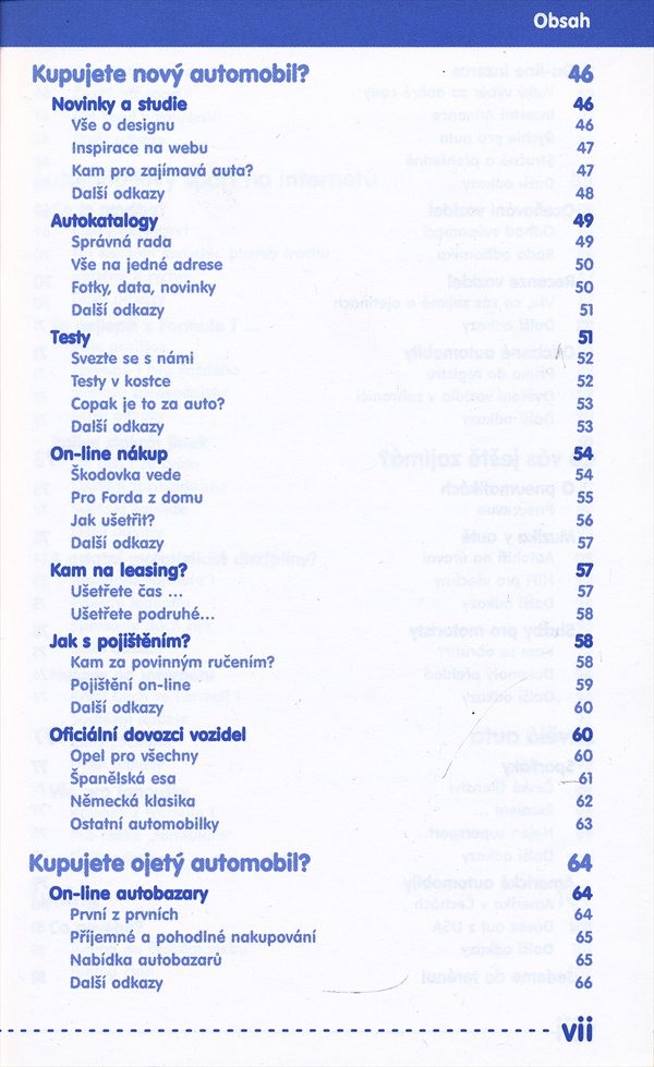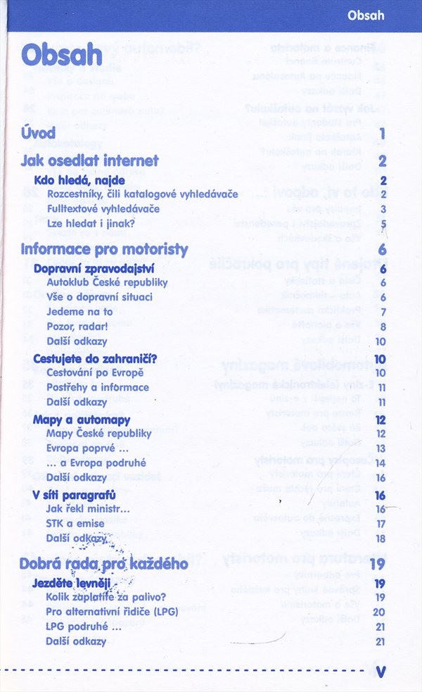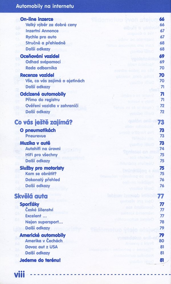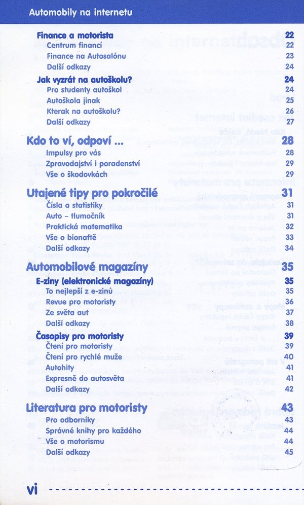 Příručka mapuje a hodnotí české i zahraniční internetové servery, které jsou spojeny s motoristickou tematikou. Údaje pro řidiče, kteří chtějí koupit nové auto, čtenáře motoristických časopisů, sportovní fanoušky, automechaniky ad.