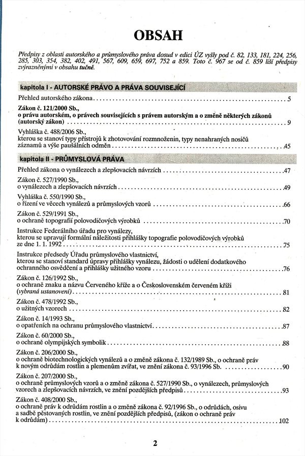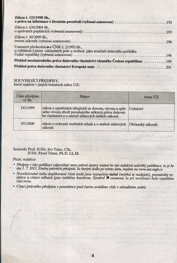 Soubor právních předpisů z oblasti autorského a průmyslového práva podle stavu k 1. 7. 2013.