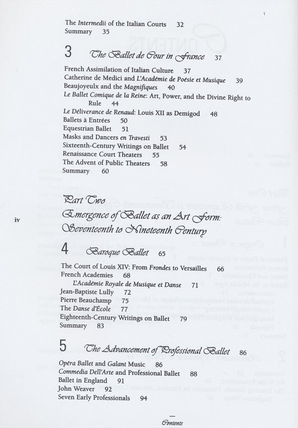Přehledná publikace mapuje historii a vývoj tance a baletu od antických prvopočátků až po jeho rozmanité podoby formované v Evropě a Americe 20. století. Vhodná jako úvod do dějin baletu pro studenty či zájemce o obor.