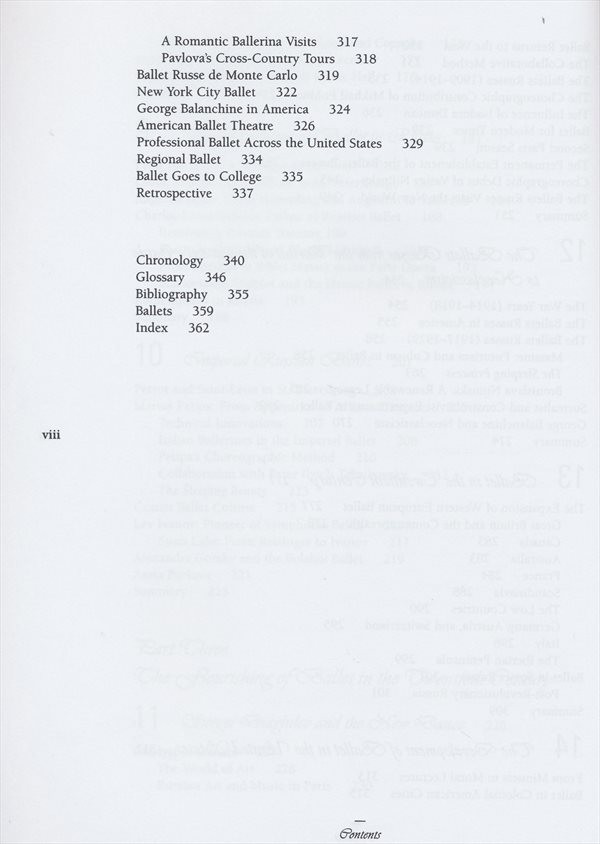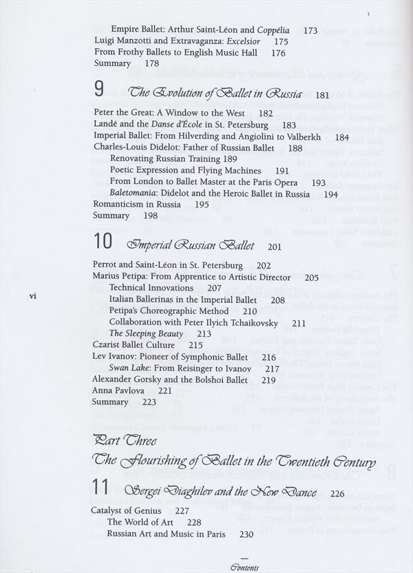 Ucelená příručka o baletu v tzv. západní kultuře je praktickým příspěvkem k dosavadní taneční literatuře. Ve 14 systematicky členěných kapitolách autorka předkládá dějiny baletu v jednotlivých historických epochách a důležitých zemích, kde docházelo k jeho podstatnému vývoji. Problematika tance a baletu je zde představena komplexně, je zasazena do obecně historického, kulturního a společenského rámce a doplněna dobovými ilustracemi, nákresy a fotografiemi. V závěru publikace se nachází orientační chronologický seznam baletních dějin, oborový glosář, rejstřík a bibliografie.
