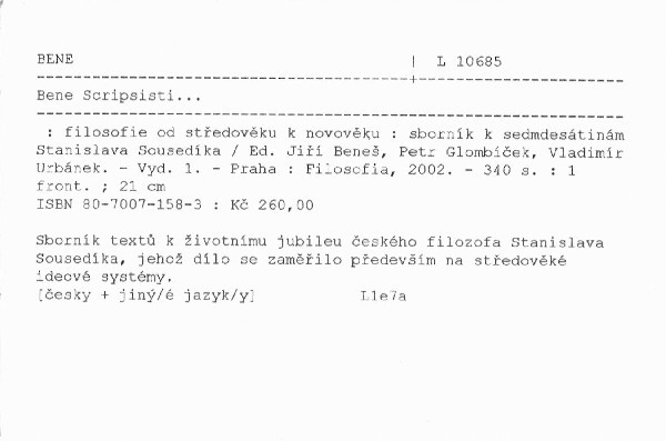 Podnázevfilosofie od středověku k novověku : sborník k sedmdesátinám Stanislava Sousedíka