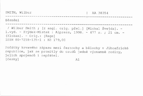 | Autor | Wilbur Smith ; [z anglického originálu přeložil Michal Švejda] |