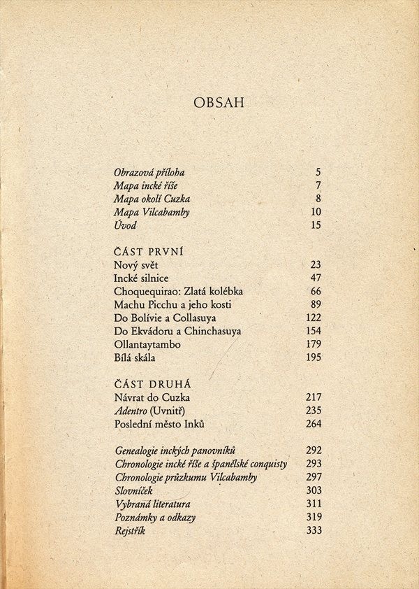 Vyvážená kombinace napínavého cestovatelského a badatelského dobrodružství a historické exkurze do dějin říše Inků. Pozoruhodná a stále ne zcela pochopená kultura tohoto národa je skrytá ve stavebních památkách rozsetých v těžko přístupných pralesích a horách Jižní Ameriky. Kniha líčí život a tragický konec nejen této zajímavé civilizace, ale i životy a leckdy rovněž tragické konce těch, kteří se vydávají po jejích stopách. Barevná a černobílá obrazová příloha, černobílá mapa.