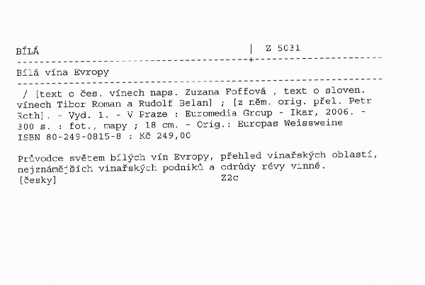 Průvodce světem bílých vín Evropy, přehled vinařských oblastí, nejznámějších vinařských podniků a odrůdy révy vinné.