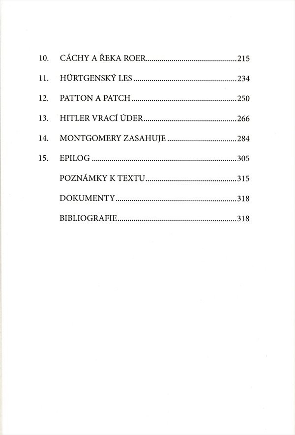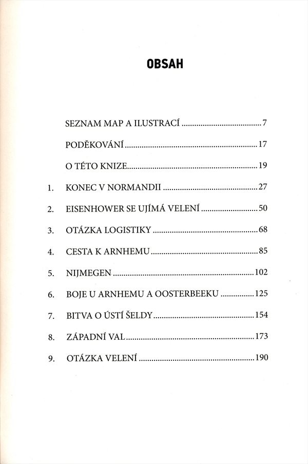 Britský historik ve své práci zachycuje průběh spojenecké operace Market Garden ze září 1944, boje v ústí Šeldy, v oblasti Cách a Hürtgenského lesa. Dále se zabývá bojovými aktivitami generála Pattona, francouzské armády a končí svůj výklad popisem bitvy v Ardenách na konci roku 1944. Kromě válečných tažení se text věnuje složitým osobním vztahům mezi nejvyššími spojeneckými veliteli a pokouší se nastínit osobní charakteristiku některých významných spojeneckých generálů. Nevyhýbá se ani logistickým problémům anglo-amerických armád na západní frontě roku 1944. Fotografie, mapy.