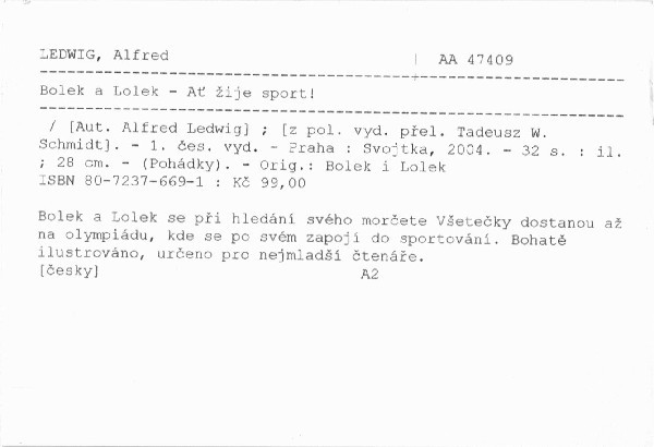 | Autor | [Aut. Alfred Ledwig] ; [z pol. vyd. přel. Tadeusz W. Schmidt] |