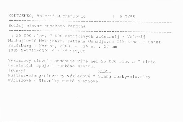 Vydání: Norint 2000 | Jazyk: ruština | Signatura: R 7655