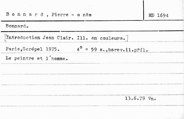 Monografie představuje Bonnardův měšťanský intimismus a krajinomalbu, malířské dílo francouzského senzualismu a koloristických tradic.