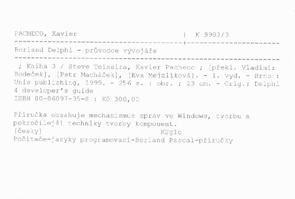 | Název | Borland Delphi - průvodce vývojáře |