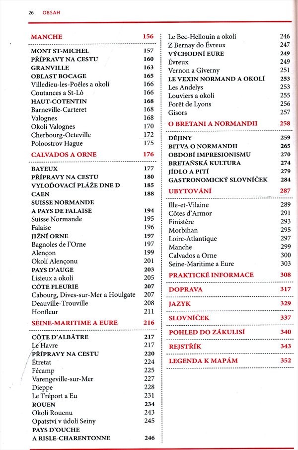 Cestovní příručka obsahuje praktické údaje pro turisty a popis pamětihodností, historických míst i přírodních krás Bretaně a Normandie.