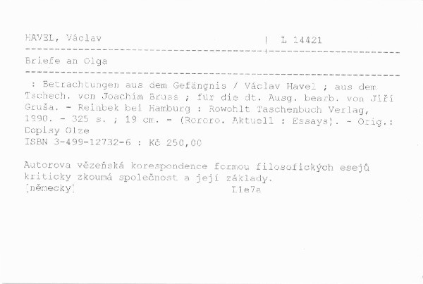 | Autor | Václav Havel ; aus dem Tschech. von Joachim Bruss ; für die dt. Ausg. bearb. von Jiří Gruša |