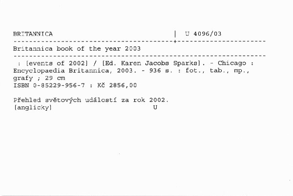 Vydání: Encyclopaedia Britannica 2003 | Jazyk: angličtina | Signatura: U 4096/03