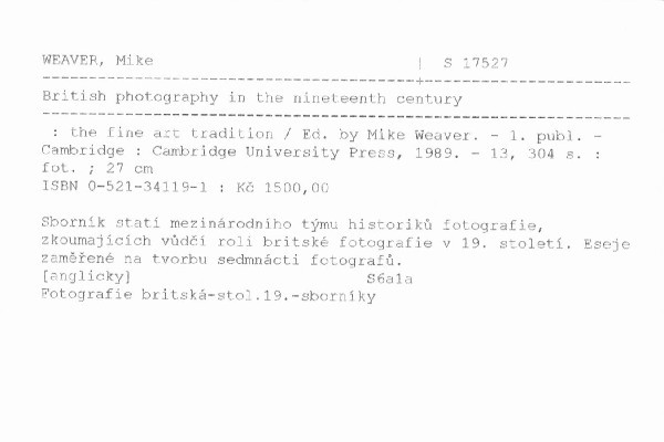 Sborník statí mezinárodního týmu historiků fotografie, zkoumajících vůdčí roli britské fotografie v 19. století. Eseje zaměřené na tvorbu sedmnácti fotografů.