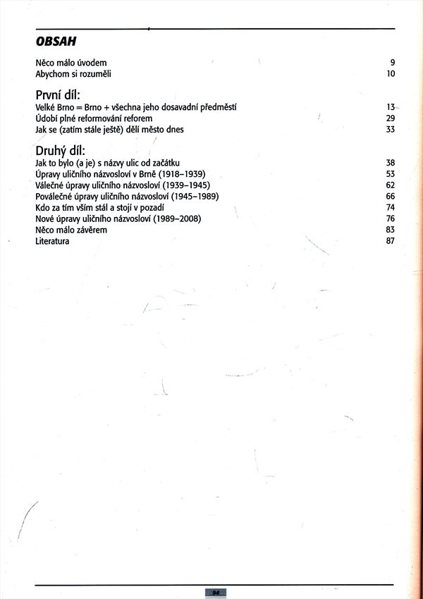 Úvodem nás kniha seznámí s Velkým Brnem a jeho předměstími, následně se dozvíme o názvu ulic od prvopočátku až do dnešních dnů a také o nových úpravách uličního názvosloví. Na devadesáti pěti stranách se dočkáme vynikajícího textu a mistrných kreseb Stanislava Sedláčka. Nakladatelská anotace. Kráceno.