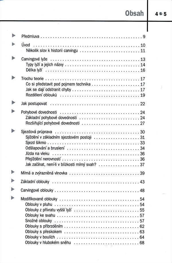 Po krátkém úvodu o historii carvingu a seznámení s touto technikou, se příručka zabývá také výstrojí a vybavením lyžaře. Především se ale věnuje technice jízdy na carvingových lyžích. Popisuje též pohyb na lyžích v obtížných terénních a sněhových podmínkách a zmiňuje se o racecarvingu a funcarvingu. Vhodná spíše pro začátečníky.