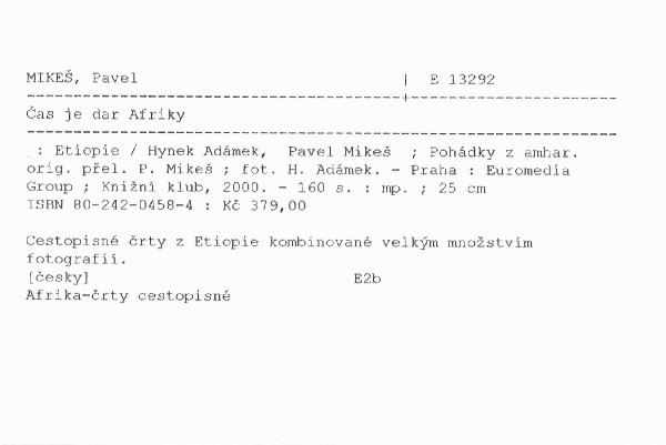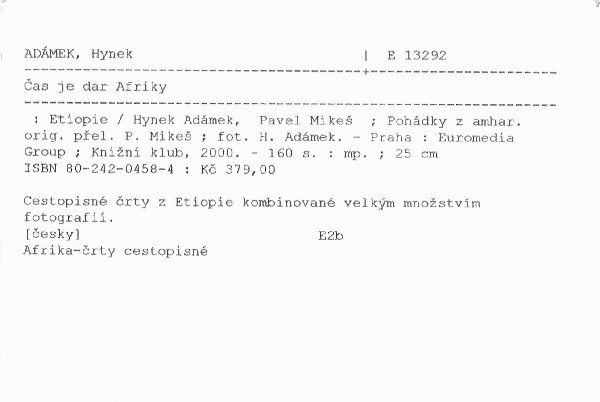 | Autor | Hynek Adámek, Pavel Mikeš ; Pohádky z amhar. orig. přel. P. Mikeš ; fot. H. Adámek |