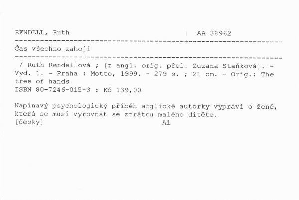 | Autor | Ruth Rendellová ; [z angl. orig. přel. Zuzana Staňková] |
