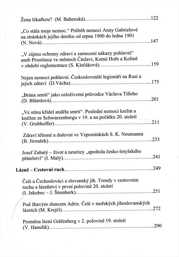Sborník mapující naše kulturní dějiny přelomu 19. a 20. století se soustředí na příspěvky věnované tehdejší hygieně, medicíně, cestovnímu ruchu a lázeňství nebo tělovýchově.