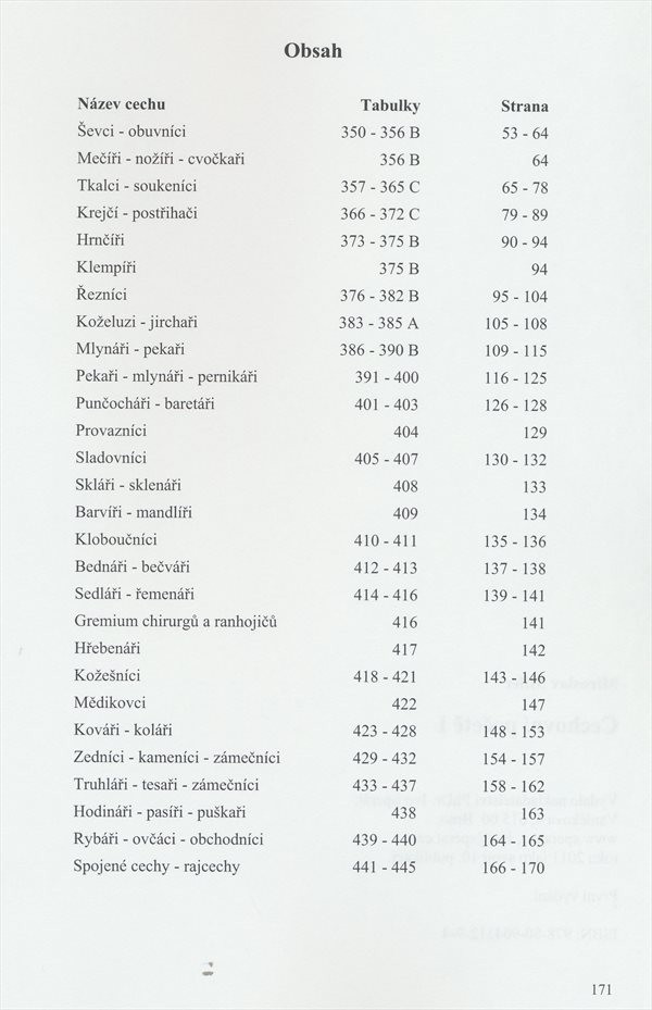 Obrázky cechovních pečetí z oblasti českých zemí i Rakouska. Rejstřík obsahuje údaje o rozměrech pečetě, jejích uživatelích, místě uložení a roku vzniku.