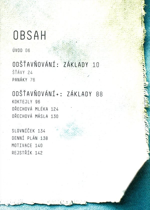 Návody k odšťavňování, suroviny k přípravě šťáv. Zdravé nápoje k snídani, obědu i večeři. Předpisy na přípravu speciálních koktejlů, které pomáhají při konkrétních potížích. Příprava ořechového mléka a másla.