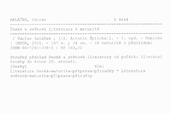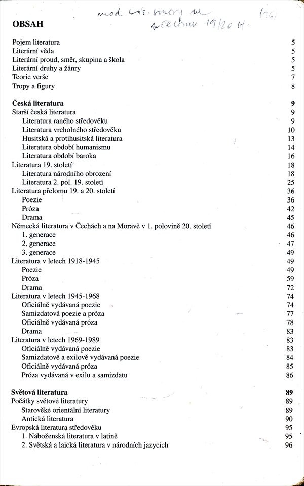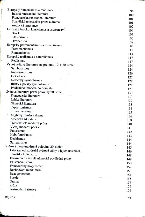 Stručný přehled české a světové literatury od počátku literární tvorby do konce 20. století.