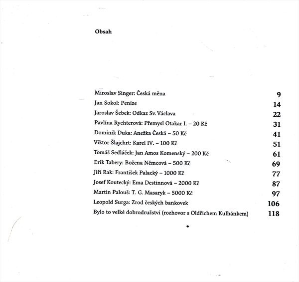 Eseje o současných českých bankovkách. Osobnosti na našich bankovkách, zrod českých bankovek, rozhovor s autorem českých bankovek Oldřichem Kulhánkem.