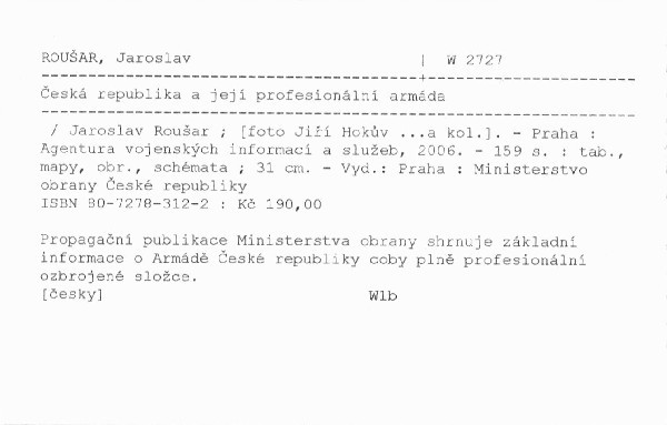 Vydání: Agentura vojenských informací a služeb 2006 | Jazyk: čeština | Signatura: W 2727 | Chci jiné vydání