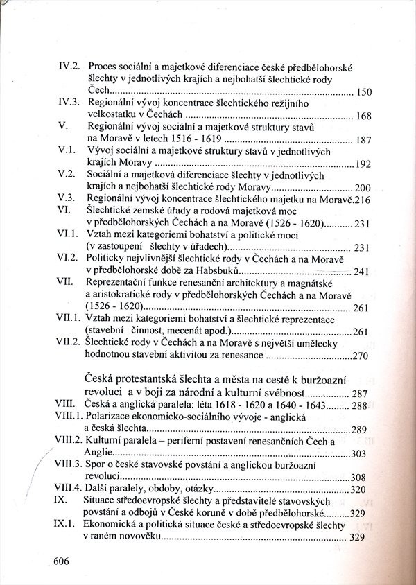 Práce především z oblasti hospodářských a sociálních dějin. Obsáhlá materiálová studie, která vznikla na základě zpracování velkého množství archívního materiálu (urbáře, berní rejstříky atd.) Na tomto základě dokládá autor především majetkové poměry a sociální postavení původní české šlechty v období od jejího vzniku po stavovské povstání v l.1618-1620.