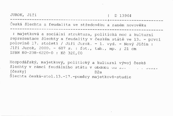| Podnázev | majetková a sociální struktura, politická moc a kulturní reprezentace šlechty a feudality v českém státě ve 13. - první polovině 17. století |