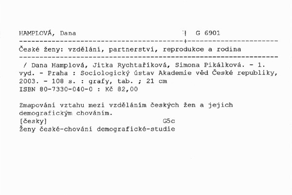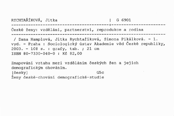 NázevČeské ženy: vzdělání, partnerství, reprodukce a rodina