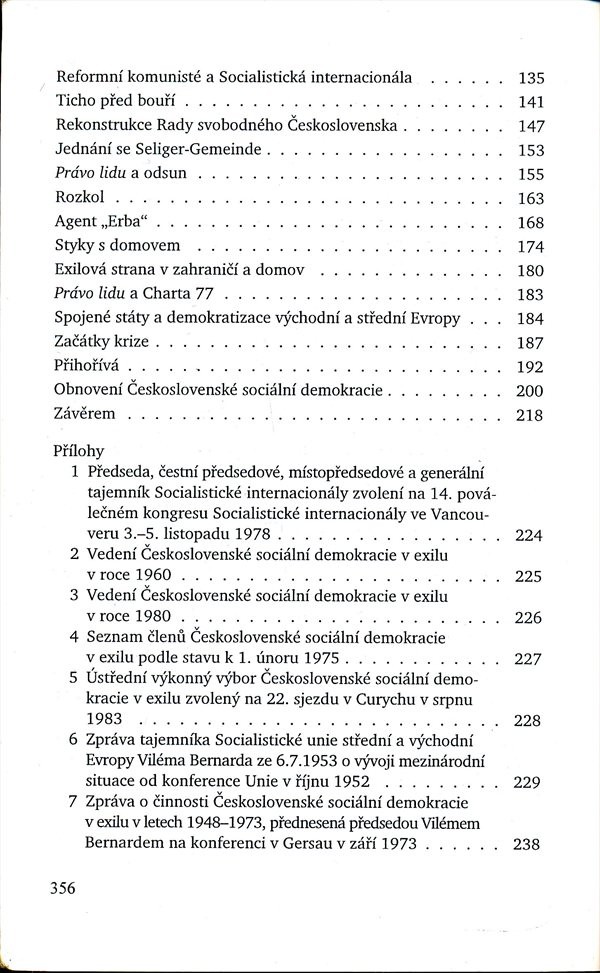 Funkcionář sociální demokracie přibližuje vývoj strany od odchodu vrcholných činitelů do exilu přes konstituování exilových politických uskupení, posrpnovou činnost socialistů a reformních komunistů na Západě až po obnovení Československé sociální demokracie. Přílohu tvoří dobové dokumenty, které mapují činnost strany v exilu.