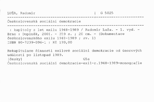 | Název edice | Dokumentace československého exilu 1948-1989 ; |