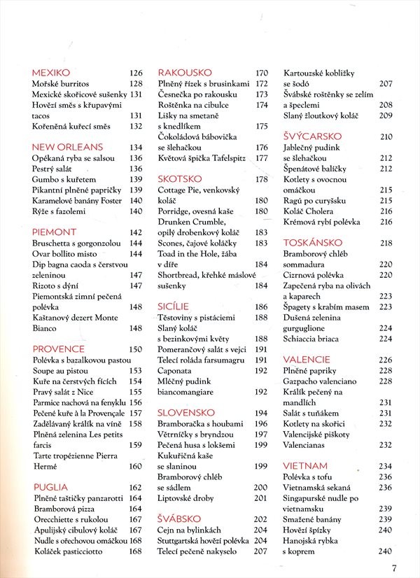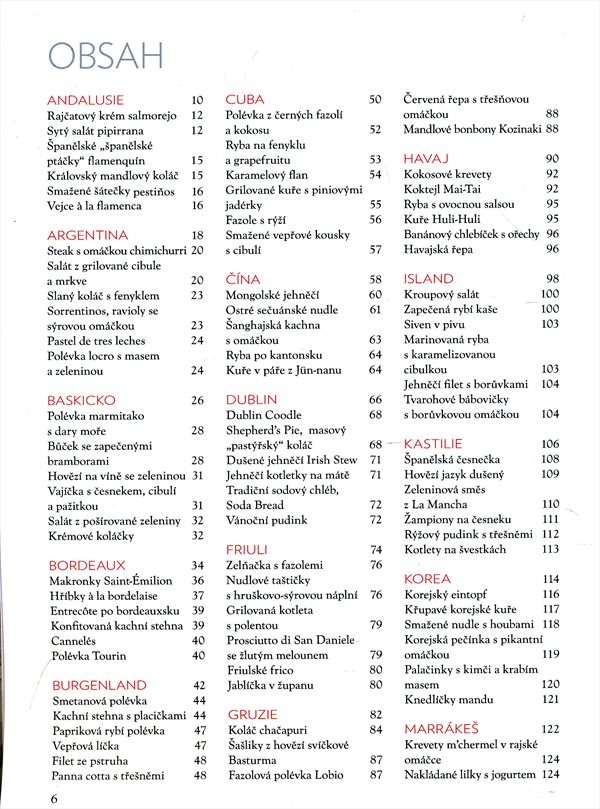 Seznámení s vybranými pokrmy celého světa slovem i obrazem. Čtenář se dozví v pětadvaceti kapitolách reprezentativní publikace stručné informace o kuchyni konkrétní země či regionu a poté je mu nabídnuto několik receptů, včetně fotografií pokrmů. Kuchařské předpisy jsou koncipovány tak, aby je bylo možné připravit i v českých podmínkách.